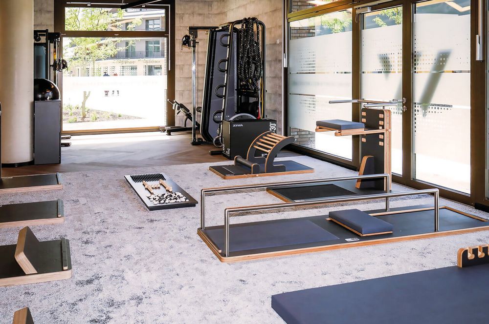 - Die Anlage im Industrial-Style zeichnet sich durch offene Bauweise, klare Linien, edle Materialien wie dunkles Holz und Marmorfliesen in den Umkleiden aus.