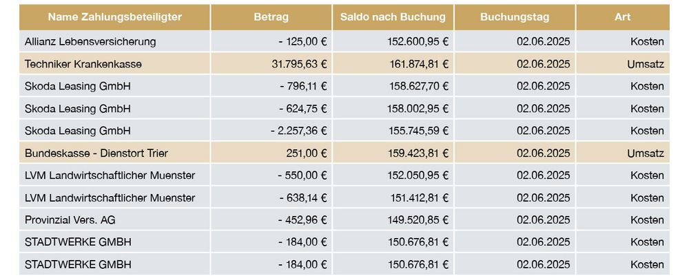 Viele Banken bieten hier das CSV-Format an. Das sind die „Rohdaten“, die man nun erst einmal aussortiert. Am Ende sind folgende Infos wichtig: „Buchungstag“, „Buchungsbeteiligter“, „Buchungsdatum“, „Saldo nach Buchung“. Die restlichen Spalten können ignoriert oder gelöscht werden. Es können aber auch weitere Spalten zur Erläuterung hinzugefügt oder farbliche Markierungen genutzt werden. Mit dieser Aufgabe wird der Grundstein für die „Clusterung“ der Liquiditätsplanung gelegt.
